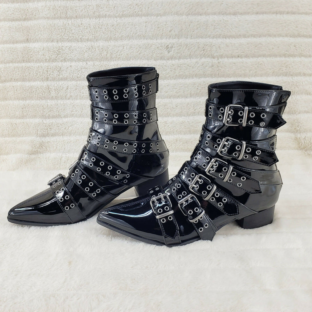 Wicked Warlock 70 Multi Strap Winklepicker Ankle Boots Mens Patent NY IN HOUSE