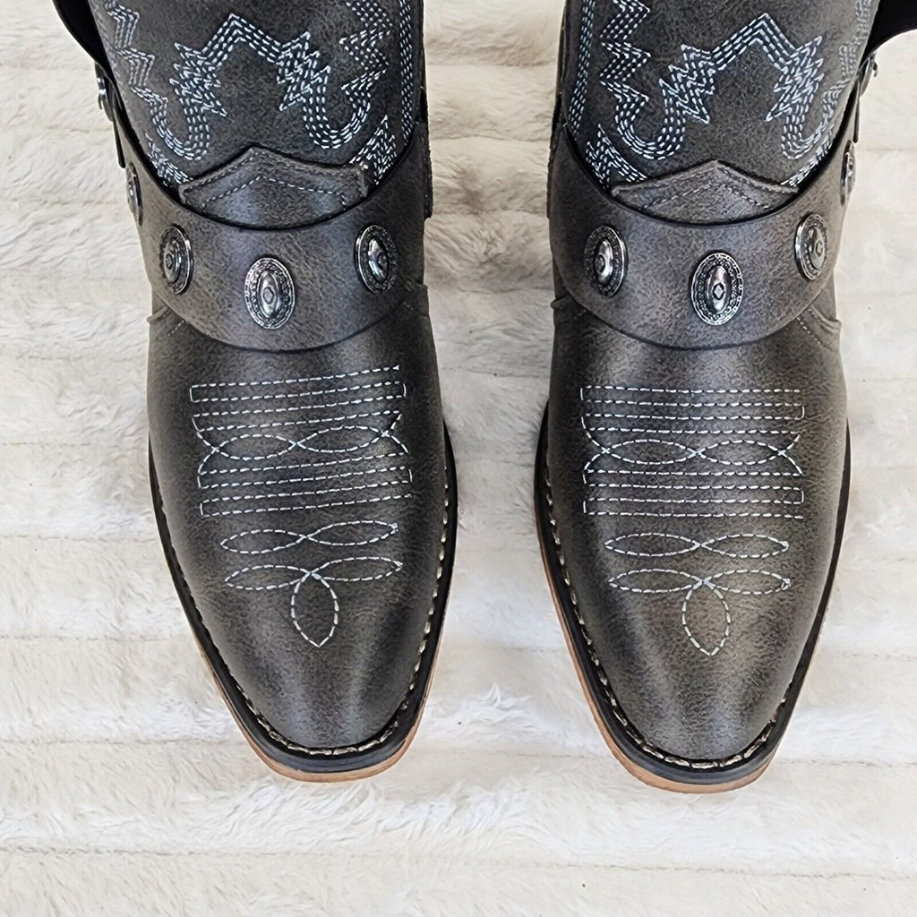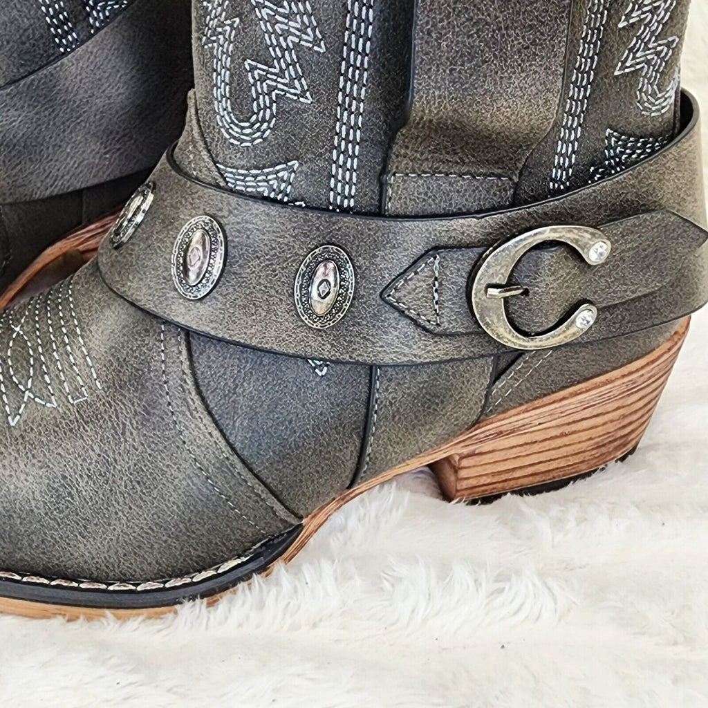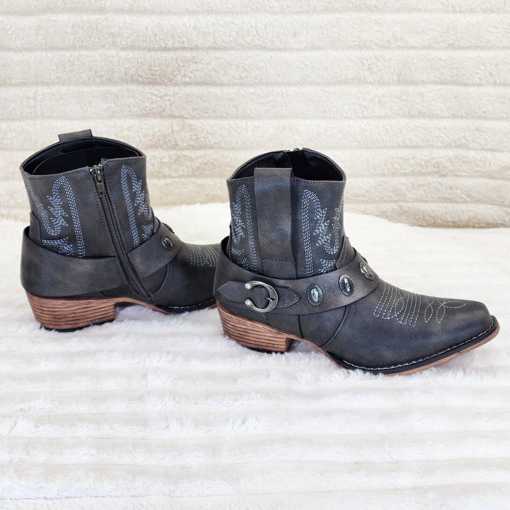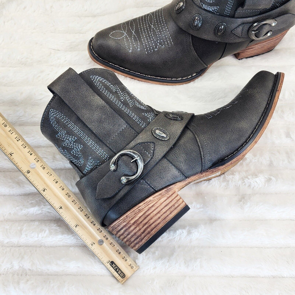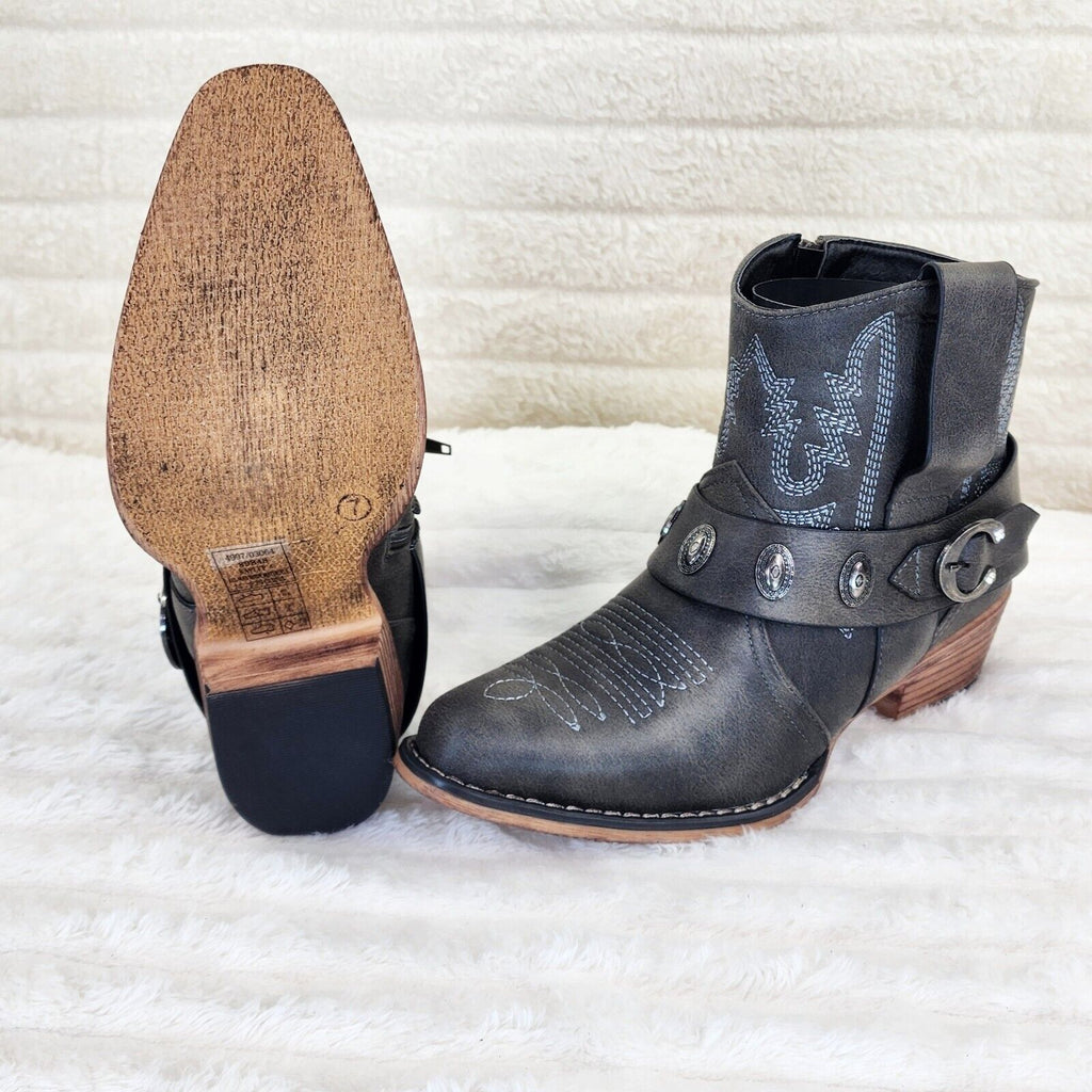 Wild West Black Distressed Western Cowgirl Pull On Ankle Boots