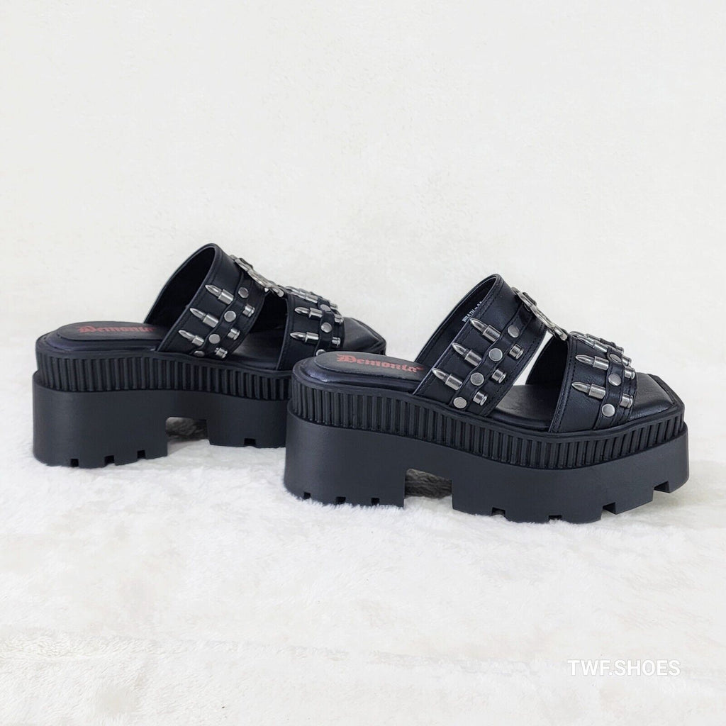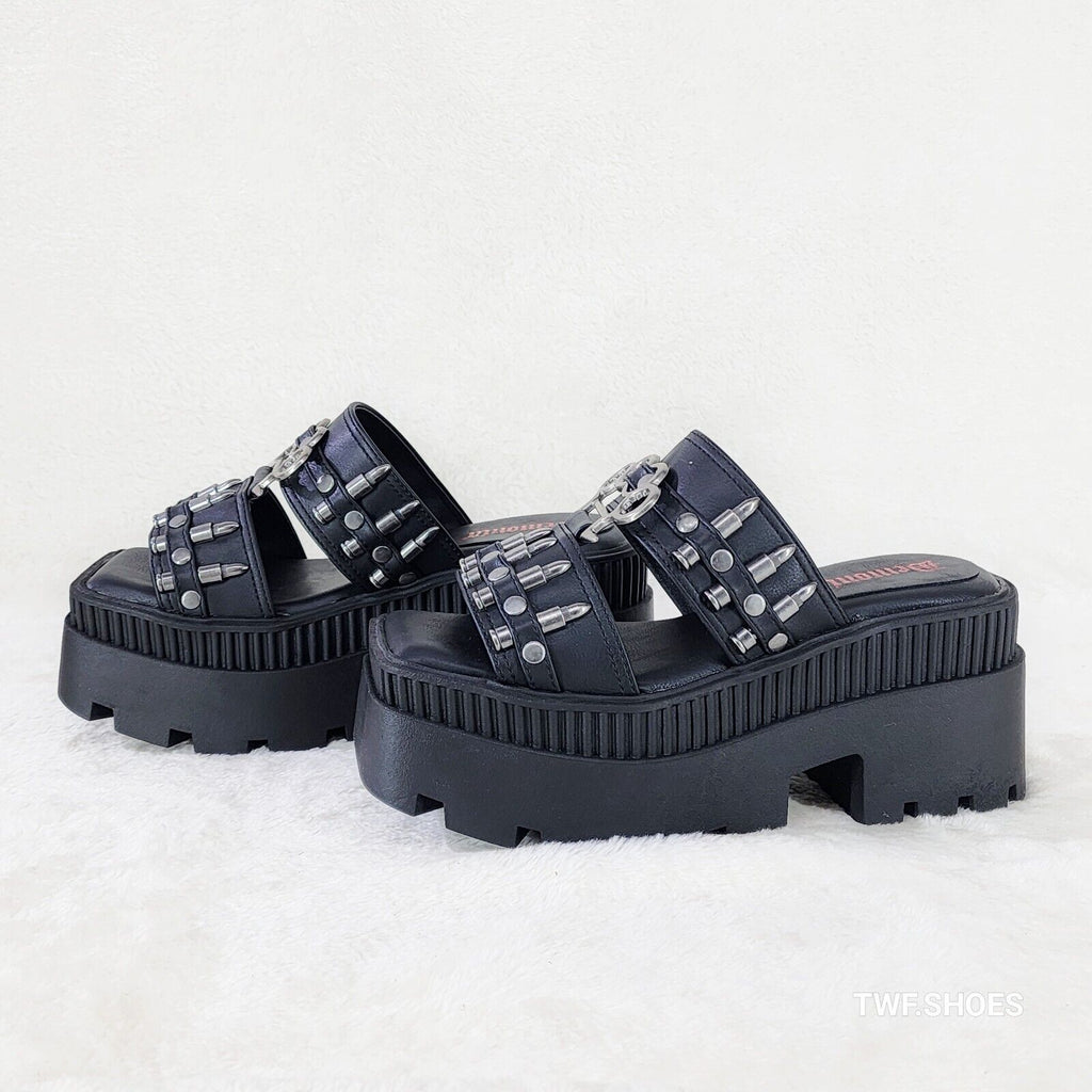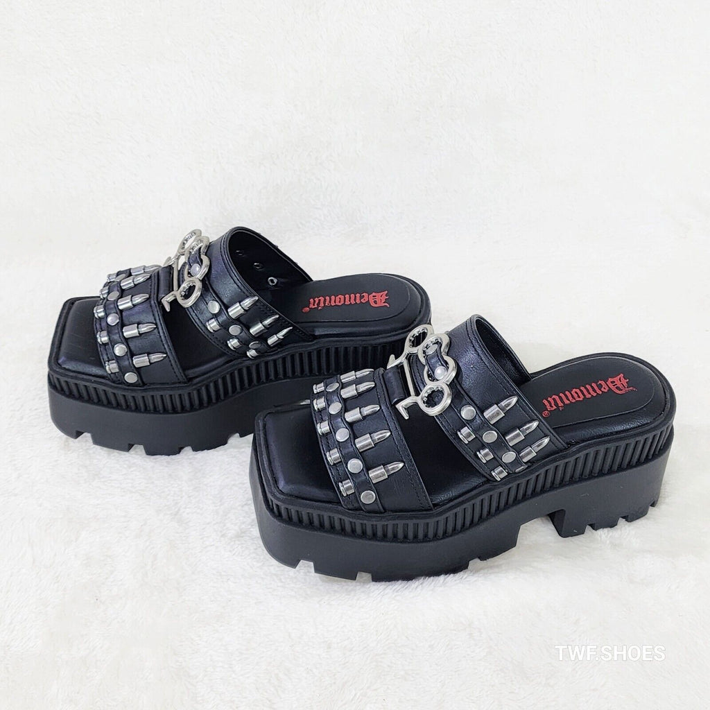 Wrath Bullet Stud Brass Knuckle Platform Goth Sandals Demonia