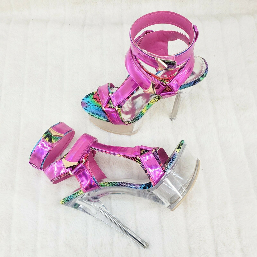 Xapala Fuchsia Hologram Harness Strap Clear Platform Shoes