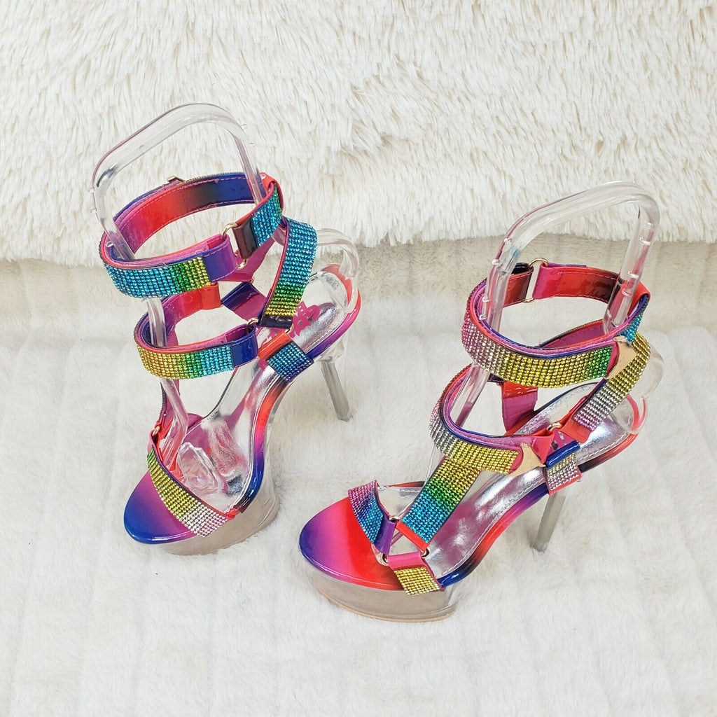 Xapala Rainbow Rhinestone Harness Strap Clear Platform High Heel Shoes